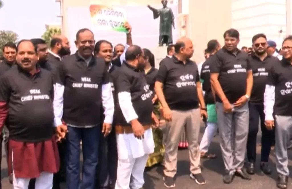 କଳା ରଙ୍ଗର ଟି-ସାର୍ଟ ପିନ୍ଧି ବିଧାନସଭା ରେ ବିରୋଧୀ ଦଳ ର ନାରାବାଜୀ