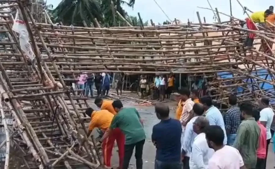 ଜଗତସିଂହପୁର: ଲଘୁଚାପ ଜନିତ ଲଗାଣ ବର୍ଷା ଓ ପବନରେ ଭାଙ୍ଗିଲା ତୋରଣ । ଜଗତସିଂହପୁର ଜିଲ୍ଲା ବାଲିକୁଦା ବଜାରରେ ନିର୍ମାଣ ହୋଇଥିବା ଦୁର୍ଗାପୂଜା ତୋରଣ ଭାଙ୍ଗି ପଡ଼ିଛି । ଫଳରେ ୫ ଜଣ ଆହତ ହୋଇଛନ୍ତି। ଆହତମାନଙ୍କୁ ପ୍ରଥମେ ବାଲିକୁଦା ପରେ ଜଗତସିଂହପୁର ମୁଖ୍ୟ ଚିକିତ୍ସାଳୟକୁ ସ୍ଥାନାନ୍ତର କରାଯାଇଛି। ସୂଚନା ଅନୁସାରେ, ଲଘୁଚାପ ପ୍ରଭାବରେ ଜଗତସିଂହପୁର ଜିଲ୍ଲାରେ ଗତକାଲିଠାରୁ ତୁହାକୁ ତୁହା ବର୍ଷା ଓ ପବନ ହୋଇଛି । ଫଳରେ ତୋରଣ ଭାଙ୍ଗି ୫ ଜଣ ଆହତ ହୋଇଛନ୍ତି।ଏନେଇ ବାଲିକୁଦା ଥାନା ଓ ଅଗ୍ନିଶମ ବିଭାଗ ଖବର ପାଇ, ଘଟଣାସ୍ଥଳରେ ପହଞ୍ଚି ଉଦ୍ଧାର କାର୍ଯ୍ୟ ଜାରି ରଖିଥିଲେ । କିଛି ଗାଡ଼ି ମଟର ମଧ୍ୟ ତୋରଣ ତଳେ ଚାପି ହୋଇଯାଇଛି । ତୋରଣ ଭାଙ୍ଗିବା ଦ୍ୱାରା କନ୍ଦରପୁର ମାଛଗାଁ ମୁଖ୍ୟରାସ୍ତାରେ ଯାତାୟାତ ବାଧାପ୍ରାପ୍ତ ହୋଇଛି ।