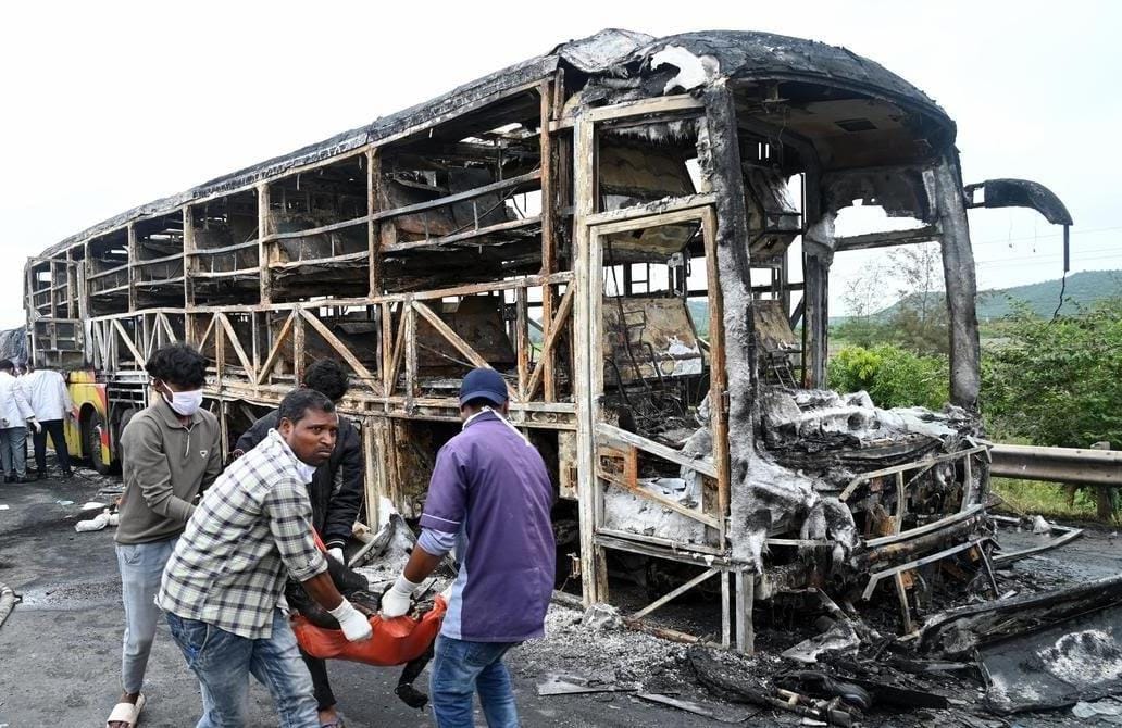ପ୍ରତ୍ୟକ୍ଷଦର୍ଶୀଙ୍କ କହିବା ଅନୁଯାୟୀ, ବସ୍‌ଟି ଏକ ବାଇକ୍‌ ସହିତ ଧକ୍କା ହେବା ପରେ ନିଆଁ ଲାଗିଯାଇଥିଲା। କିଛି ଯାତ୍ରୀ ଖସି ପଳାଇବାରେ ସଫଳ ହୋଇଥିଲେ, ଯେତେବେଳେ ଅନ୍ୟମାନେ ଭିତରେ ପୋଡ଼ି ମୃତ୍ୟୁବରଣ କରିଥିଲେ। ରାତି ହେତୁ, ସମୟାନୁସାରେ ସାହାଯ୍ୟ ମିଳିପାରିନଥିଲା, ଯାହା ଫଳରେ ବହୁତ ଜୀବନ ଏବଂ ସମ୍ପତ୍ତି କ୍ଷୟକ୍ଷତି ହୋଇଥିଲା। ଅଧିକାରୀମାନେ ଏପର୍ଯ୍ୟନ୍ତ ମୃତାହତଙ୍କ ସଠିକ୍ ସଂଖ୍ୟା ନିଶ୍ଚିତ କରିନାହାଁନ୍ତି। ମୁଖ୍ୟମନ୍ତ୍ରୀ ଏନ. ଚନ୍ଦ୍ରବାବୁ ନାଇଡୁ ପୀଡିତଙ୍କ ପରିବାର ପ୍ରତି ସମବେଦନା ପ୍ରକାଶ କରିଛନ୍ତି।
